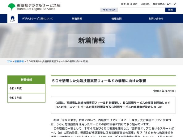 東京都の「5Gを活用した先端技術実証フィールドの構築に向けた取組」の事業者に選定されました